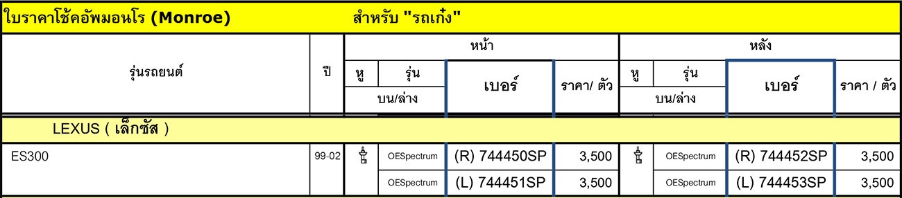 โช้คอัพหน้า โช้คอัพหลัง โช้คค้ำฝา กระโปรง สปริงโช้คอัพ สเปเซอร์