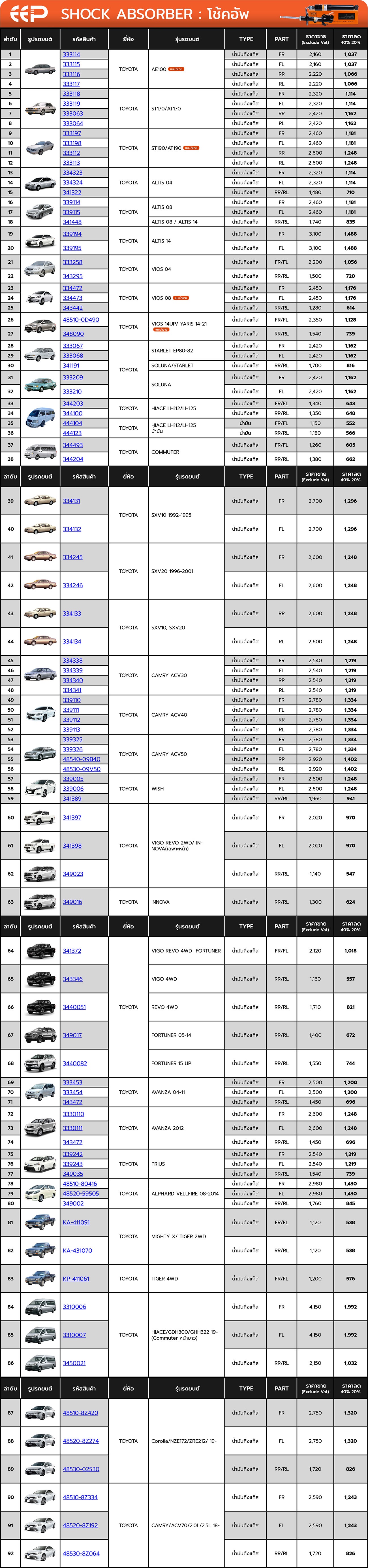 โช้คอัพหน้า โช้คอัพหลัง โช้คค้ำฝา กระโปรง สปริงโช้คอัพ สเปเซอร์