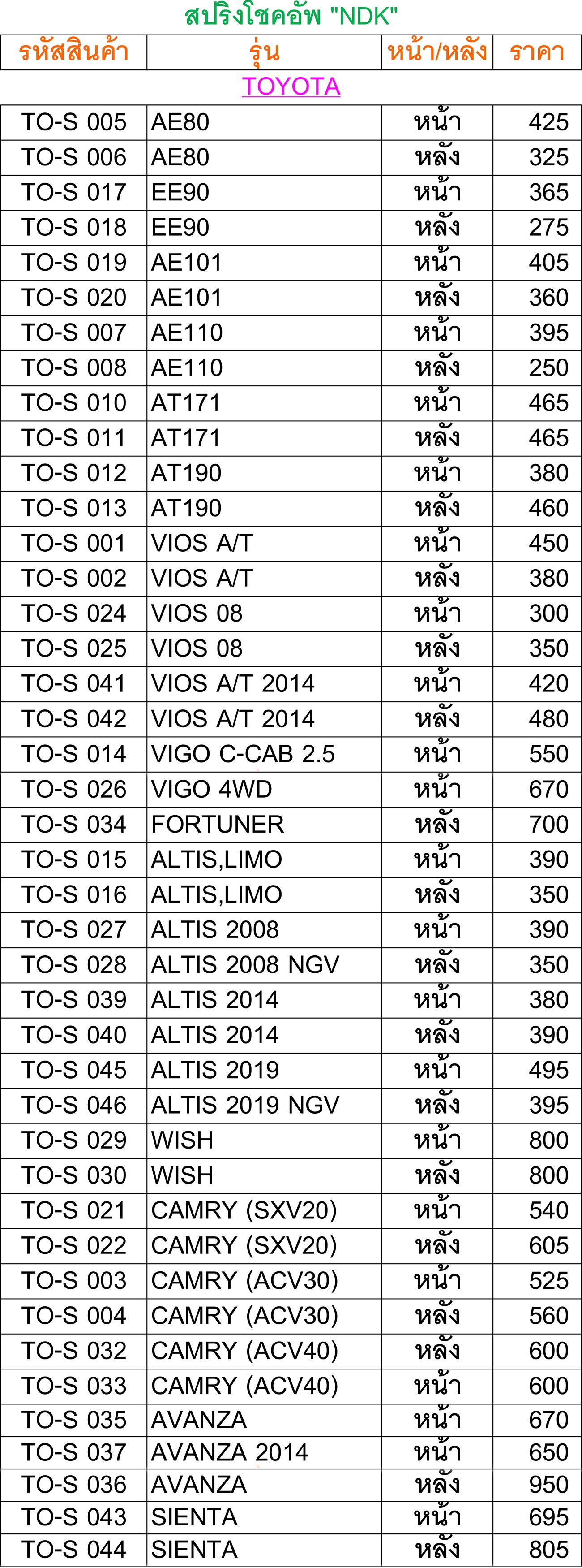 โช้คอัพหน้า โช้คอัพหลัง โช้คค้ำฝา กระโปรง สปริงโช้คอัพ สเปเซอร์