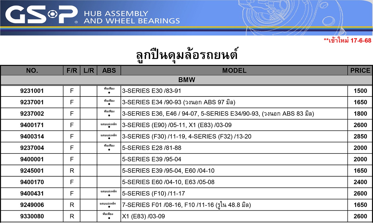 ลูกปืนล้อหน้า-หลัง ยอยกากบาท เพลากลาง ลูกปืนคลัทซ์