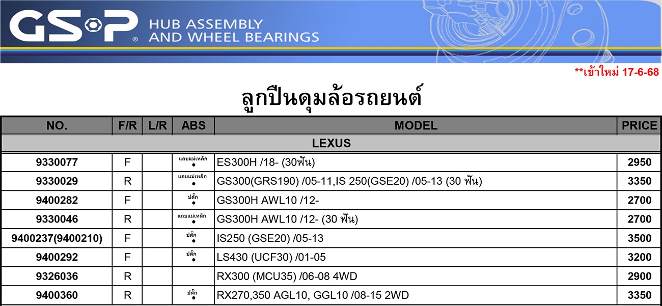ลูกปืนล้อหน้า-หลัง ยอยกากบาท เพลากลาง ลูกปืนคลัทซ์