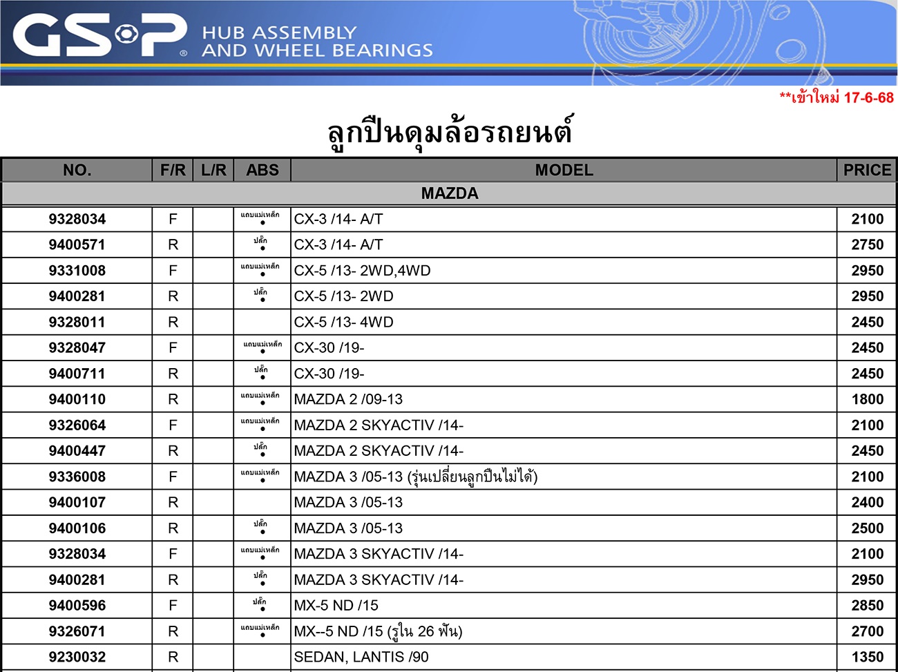ลูกปืนล้อหน้า-หลัง ยอยกากบาท เพลากลาง ลูกปืนคลัทซ์