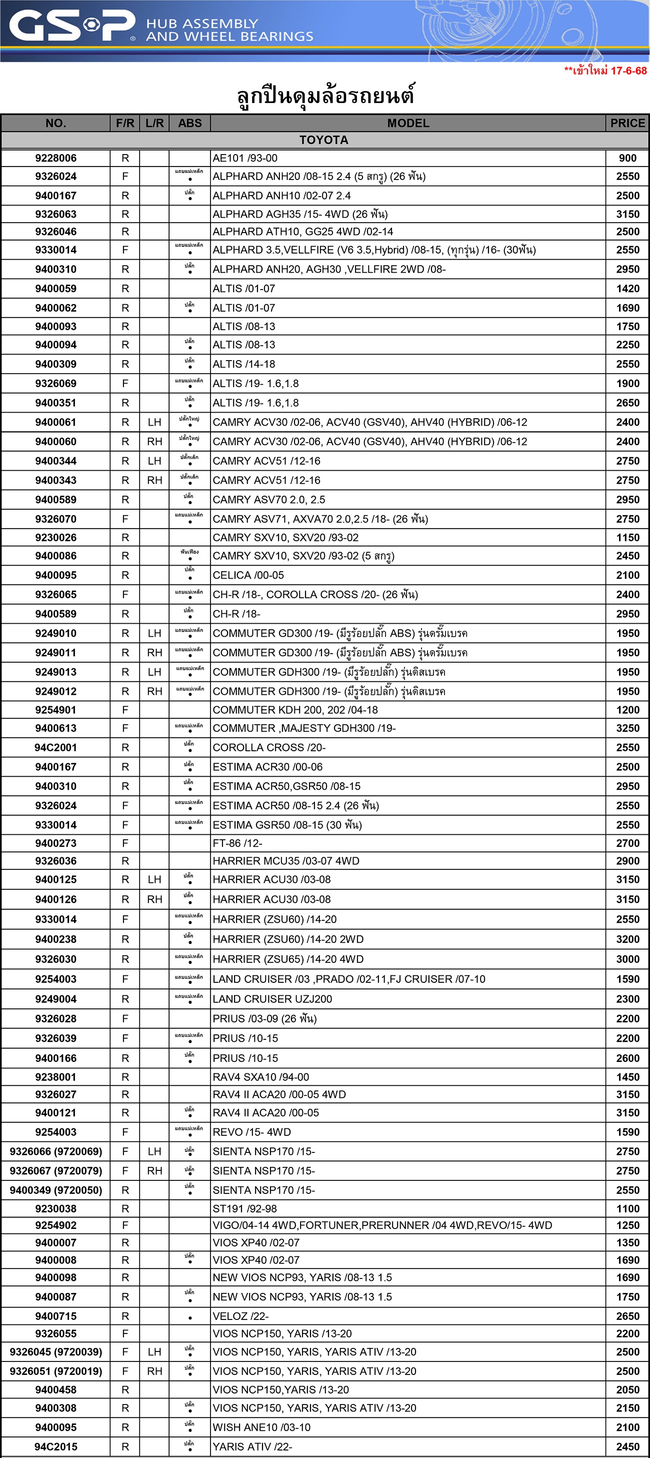 ลูกปืนล้อหน้า-หลัง ยอยกากบาท เพลากลาง ลูกปืนคลัทซ์