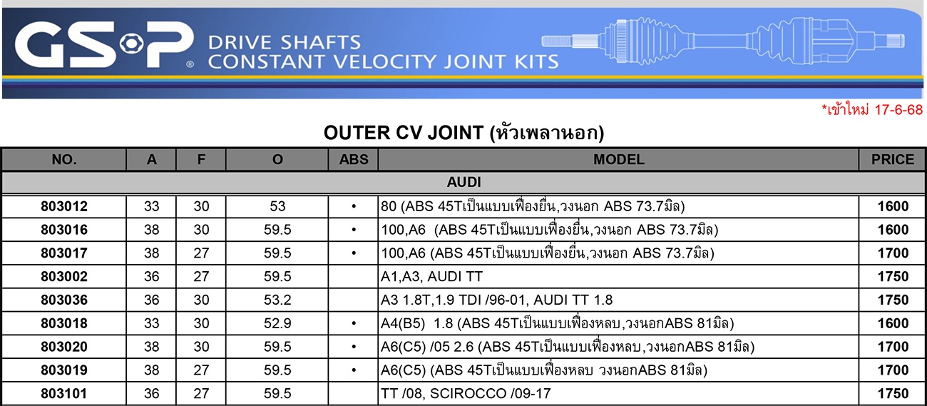 หัวเพลาขับ เพลาขับทั้งเส้น
