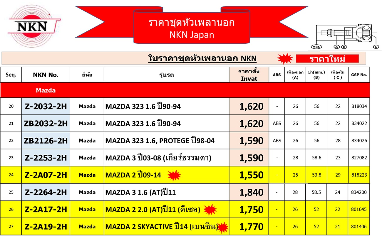 หัวเพลาขับ เพลาขับทั้งเส้น