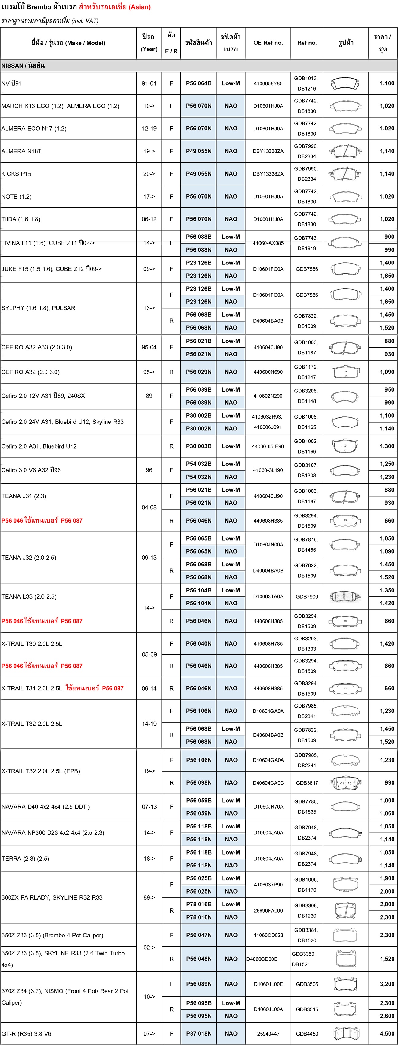 ผ้าดิสเบรค ก้ามเบรค รถเล็ก รถบรรรทุก