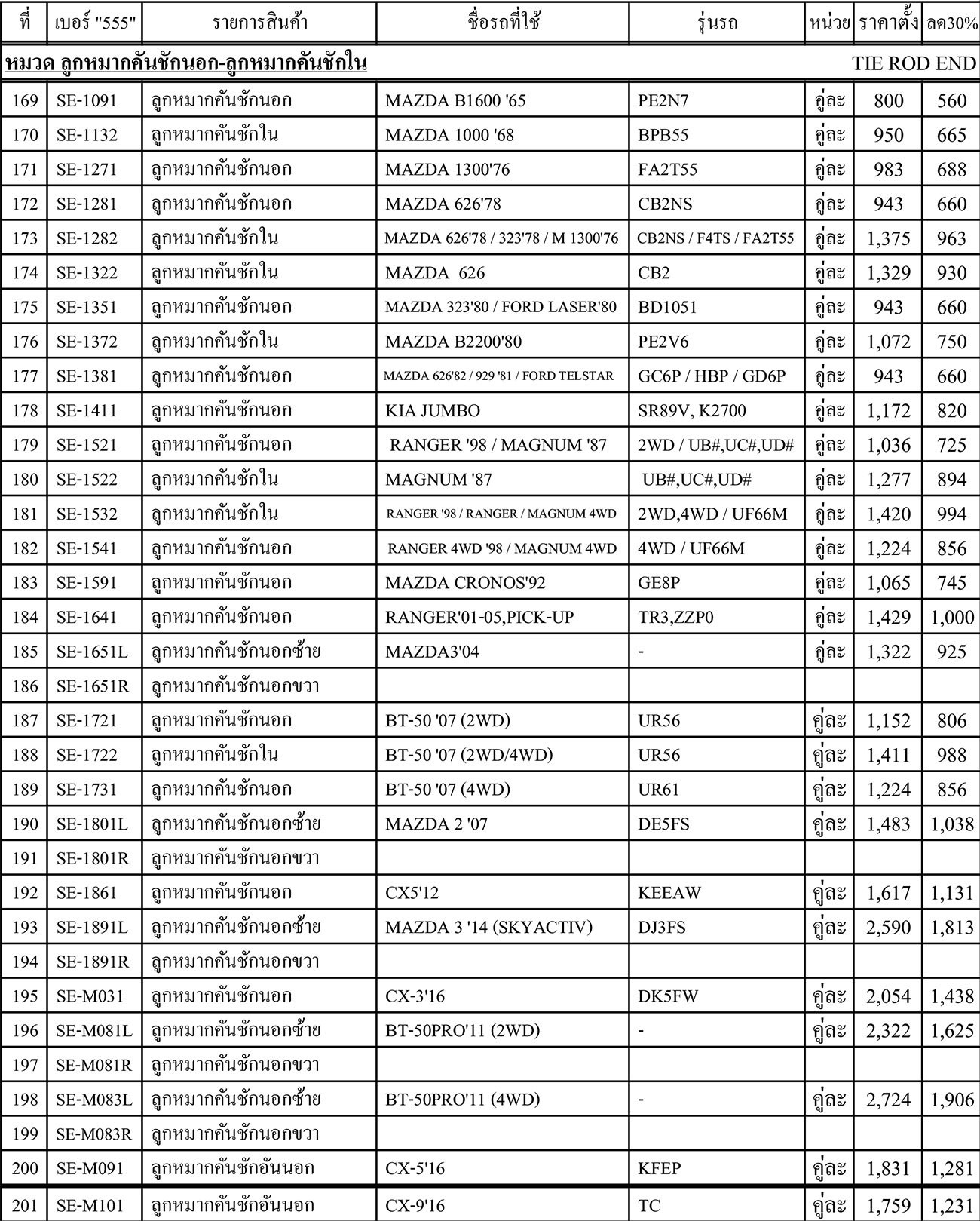 ลูกหมากปีกนก ลูกหมากคันชัก ลูก หมากแร็ค ลูกหมากกันโคลง