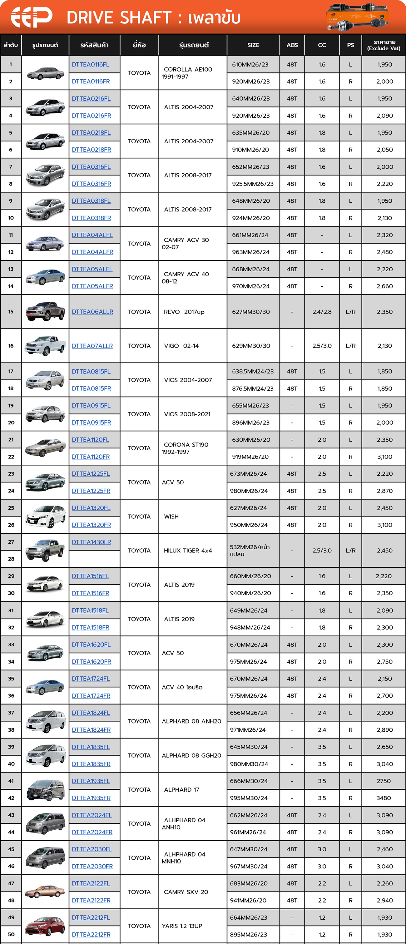 หัวเพลาขับ เพลาขับทั้งเส้น