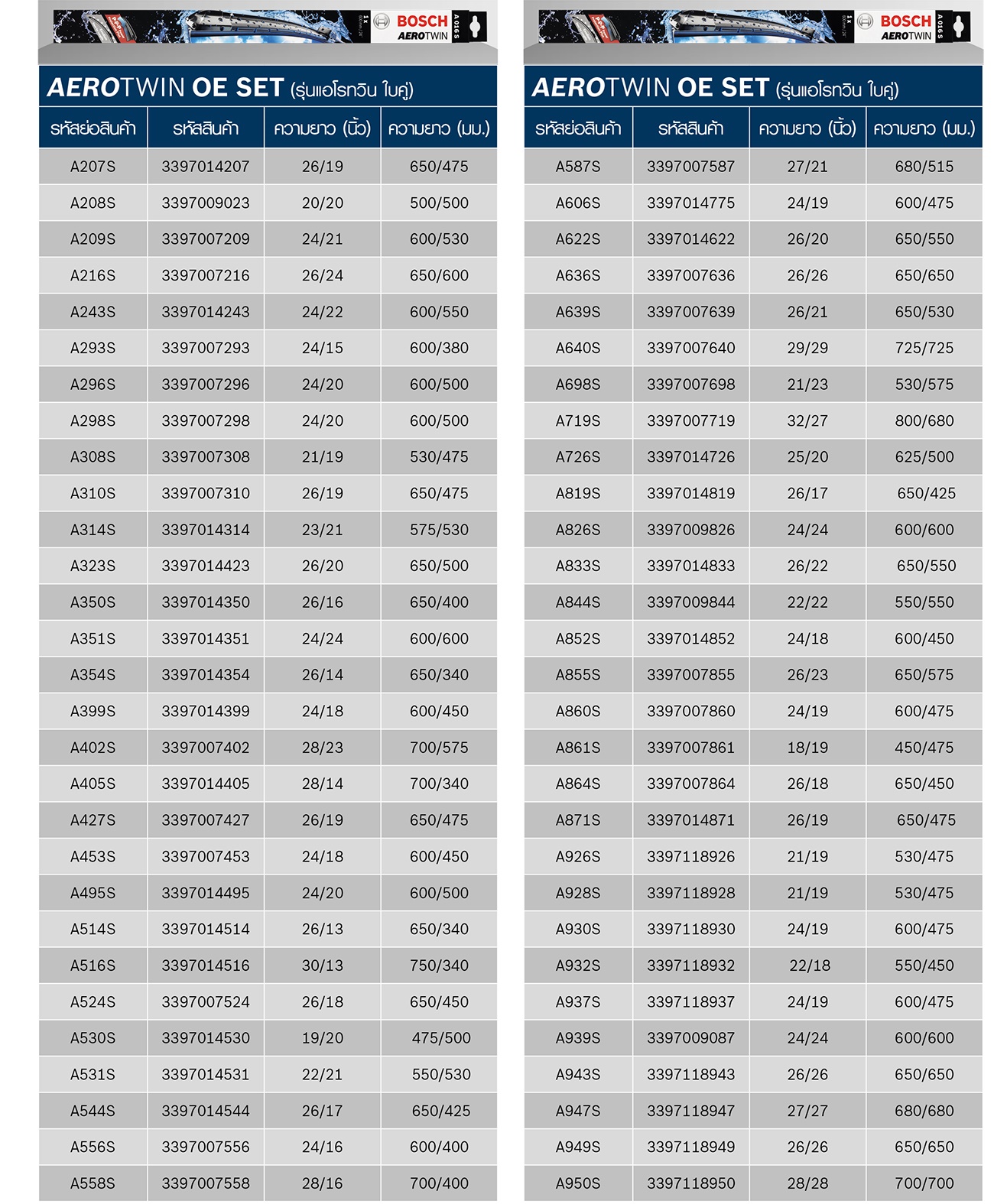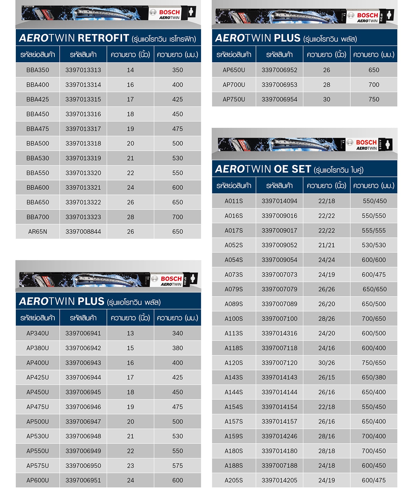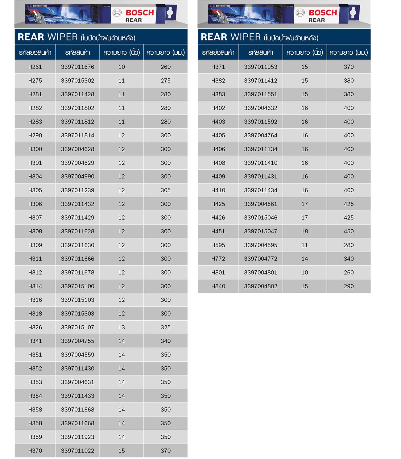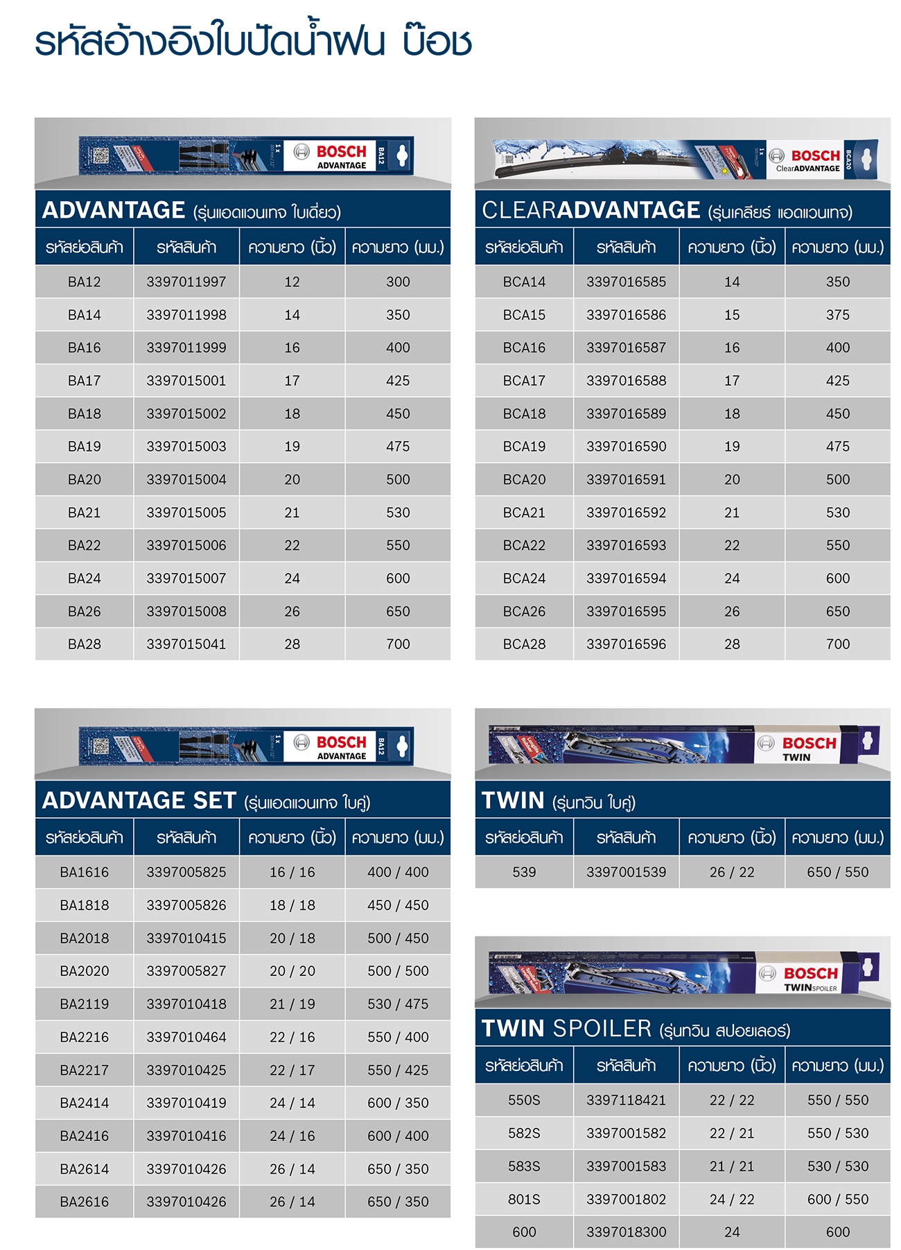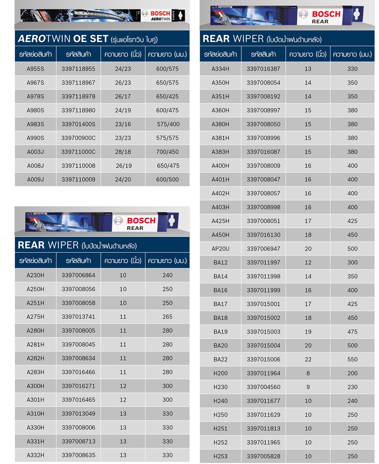 รหัสอ้างอิงใบปัดน้ำฝน บ๊อช