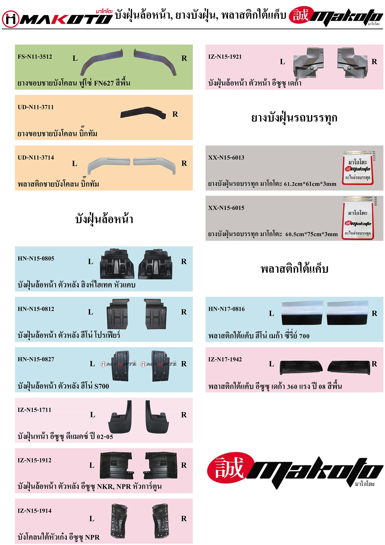 บังฝุ่นล้อหน้า,ยางบังฝุ่น,พลาสติกใต้แค็บ