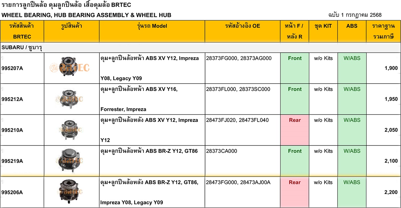 ลูกปืนล้อหน้า-หลัง ยอยกากบาท เพลากลาง ลูกปืนคลัทซ์
