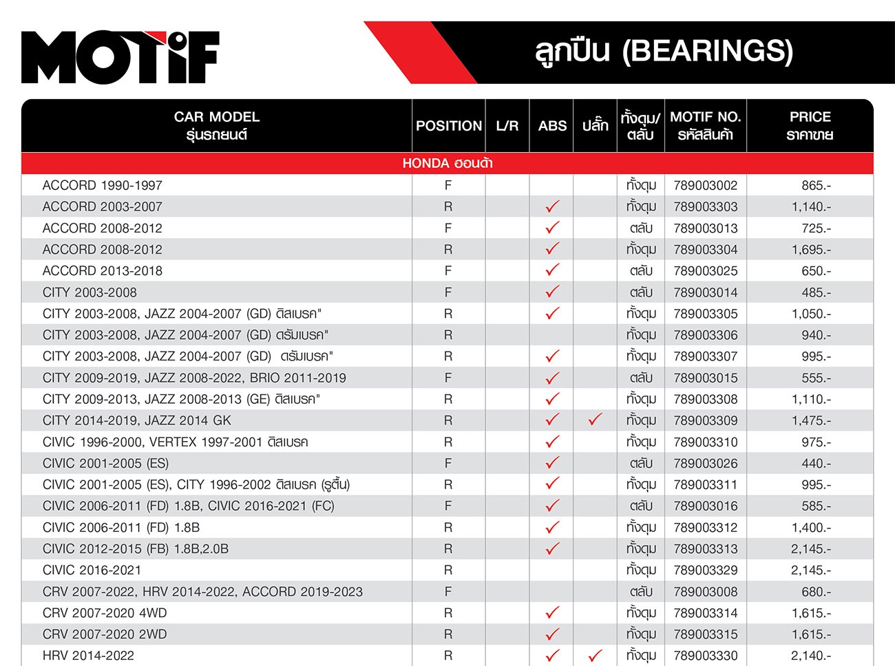 ลูกปืนล้อหน้า-หลัง ยอยกากบาท เพลากลาง ลูกปืนคลัทซ์