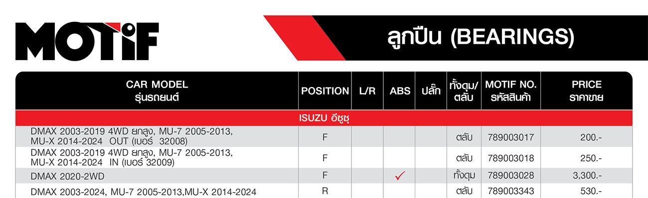 ลูกปืนล้อหน้า-หลัง ยอยกากบาท เพลากลาง ลูกปืนคลัทซ์