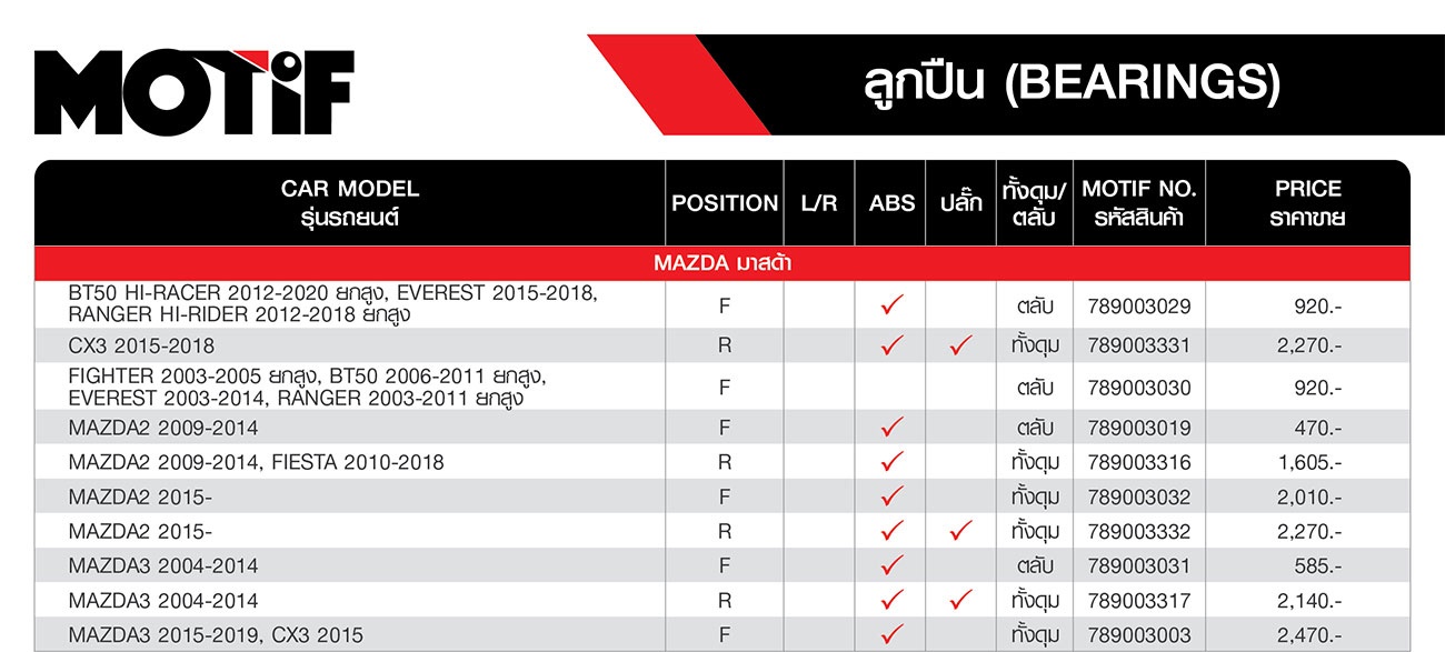 ลูกปืนล้อหน้า-หลัง ยอยกากบาท เพลากลาง ลูกปืนคลัทซ์