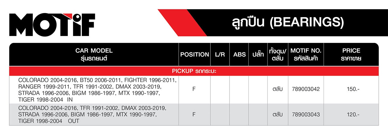 ลูกปืนล้อหน้า-หลัง ยอยกากบาท เพลากลาง ลูกปืนคลัทซ์