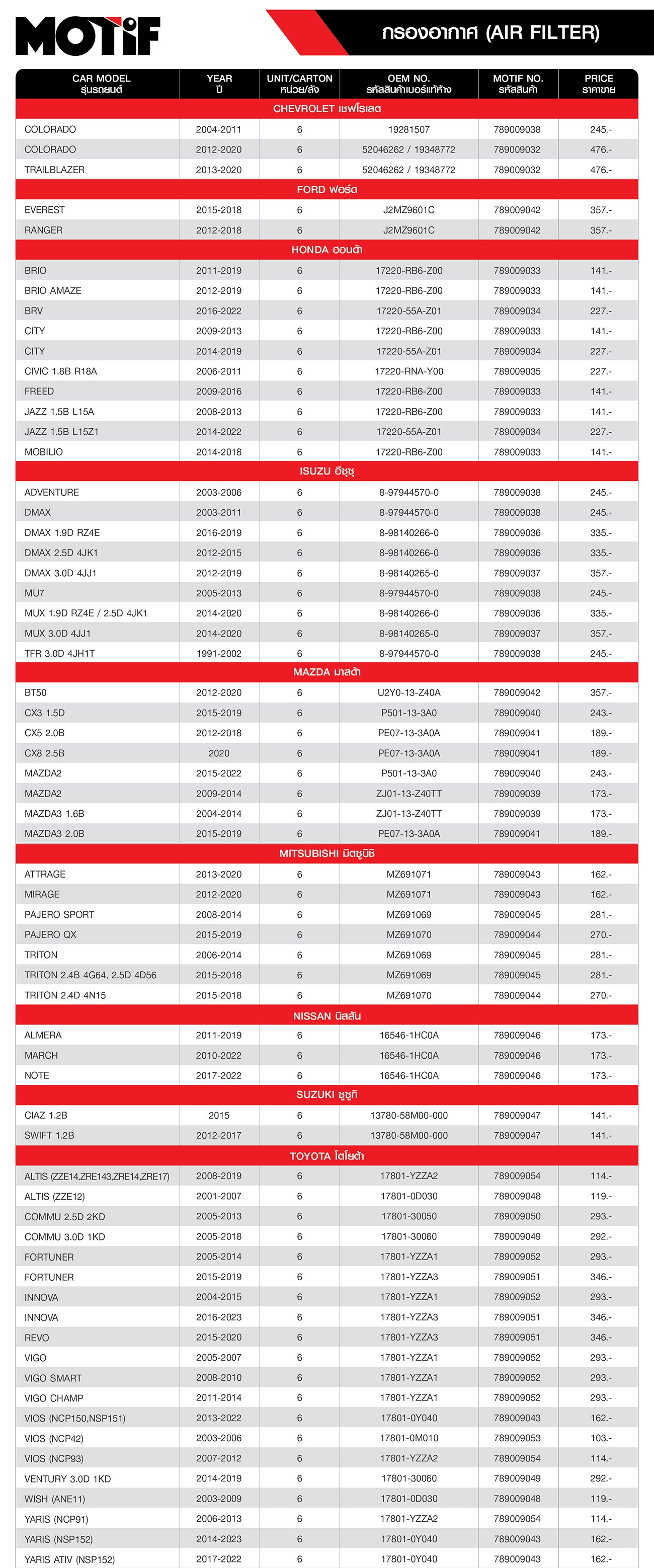 กรองน้ำมันเครื่อง กรองอากาศ กรองแอร์