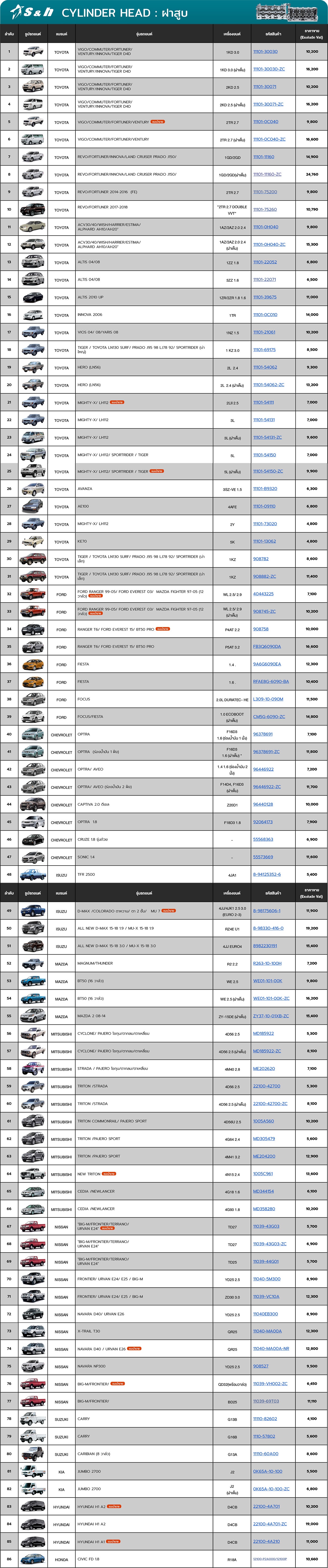 ประเก็นฝาสูบ ประเก็นไอดี-ไอเสีย ประเก็นฝาสูบชุดใหญ่